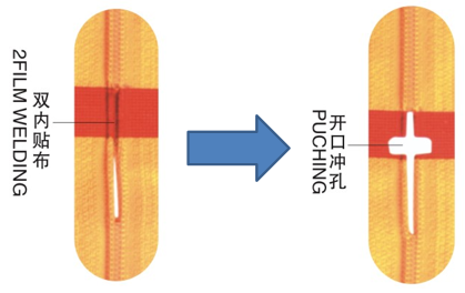 - 更換模具及少量配件即可同機完成尼龍,金屬,樹脂拉鏈等沖孔工藝。